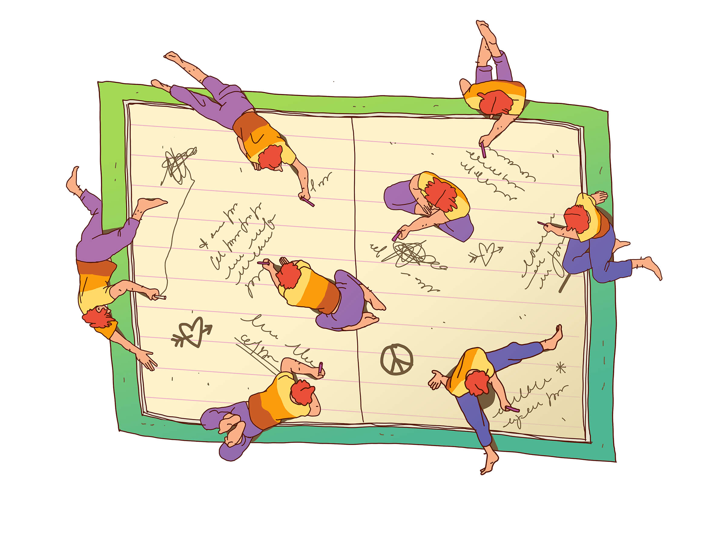 - Jan Wolkers “Dagboek 1968”, nor me nor the editor had the copy at the time of the illustration making, we just knew it was a journal, something describing threesomes and protesting the Vietnam war -but better keeping it general.